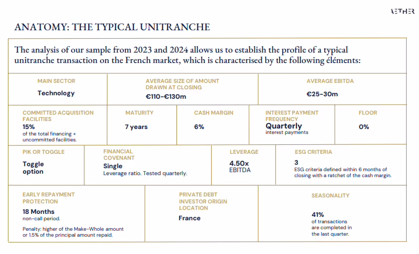 This white paper provides a comprehensive framework for understanding the typical profile of a unitranche deal in today’s environment. By combining our proprietary index with a dedicated market study, it sheds light on the full spectrum of trends, challenges, and structural dynamics shaping the French private debt landscape. Download the white paper to gain clear, data-driven insights into the evolution of unitranche financing in France.